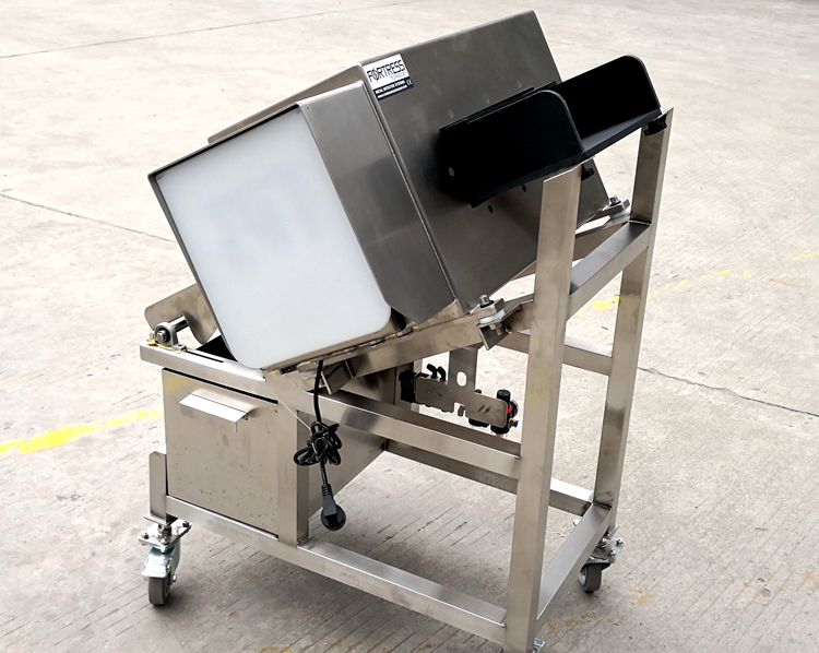 4010型下沉剔除金檢機(jī),檢測到有金屬異物的散裝食品自動下沉排除,無需停機(jī),適合對接自動化生產(chǎn)線使用。