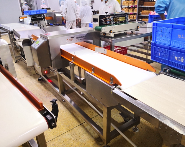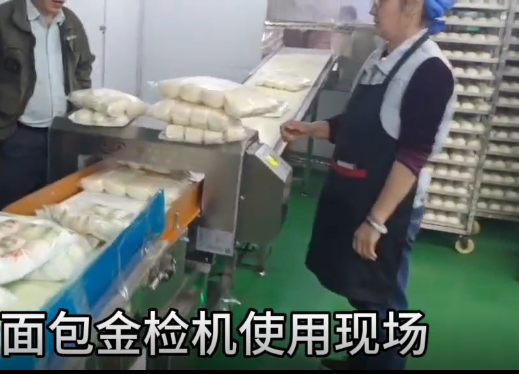 廣東某面包生產(chǎn)廠家使用連之新食品面包金檢機(jī)使用現(xiàn)場