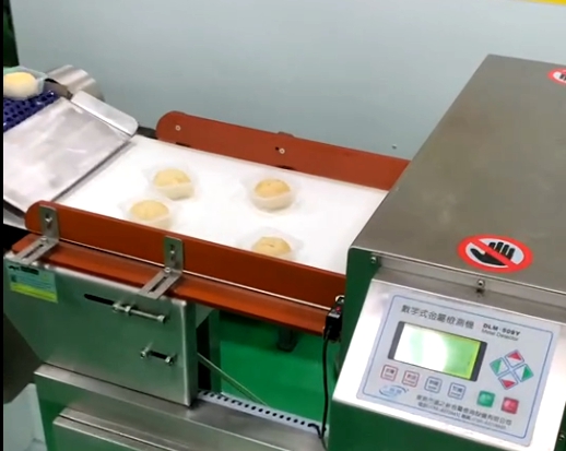 連之新DLM-509Y2010型金屬檢測機(jī)使用現(xiàn)場,有金屬的物品可以做到自動檢測并剔除。