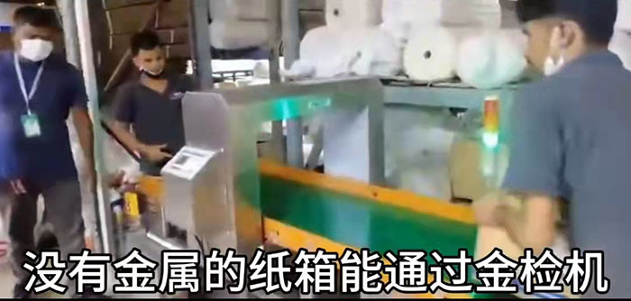 沒有金屬的紙箱順利通過連之新金檢機(jī),而客戶使用的金屬卡幾次檢測都不能通過。